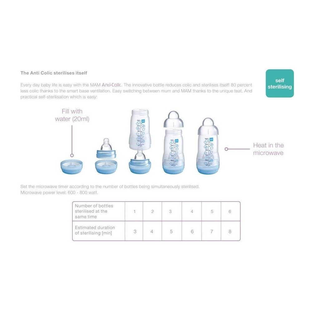 With the Anti-Colic bottle babies feel relaxed and happy from day one. This is because they don't swallow any air while drinking. And this makes the switch between Mum and MAM particularly easy.