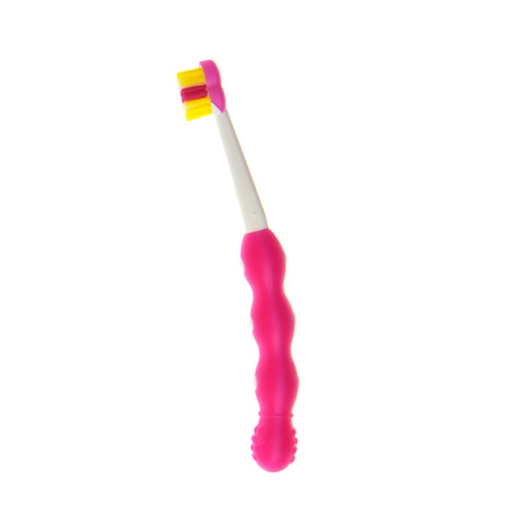 Short and compact handle, ideal for imitating adults' toothbrushing strokes